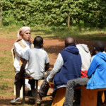 Beneath the gentle shade of a sprawling tree, a scene of quiet inspiration unfolds: